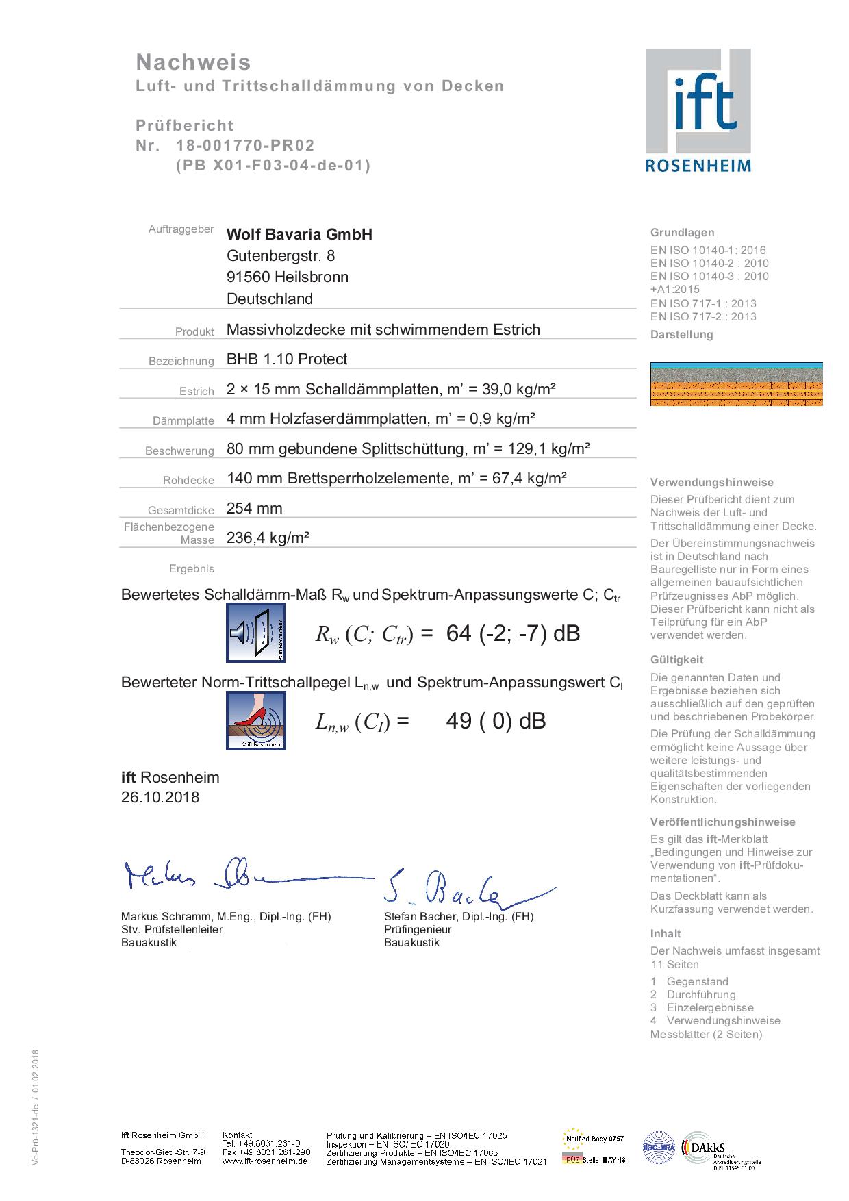 | Bewerteter Norm-Trittschallpegel - Ln,w [dB]: | 27 (3) dB |
