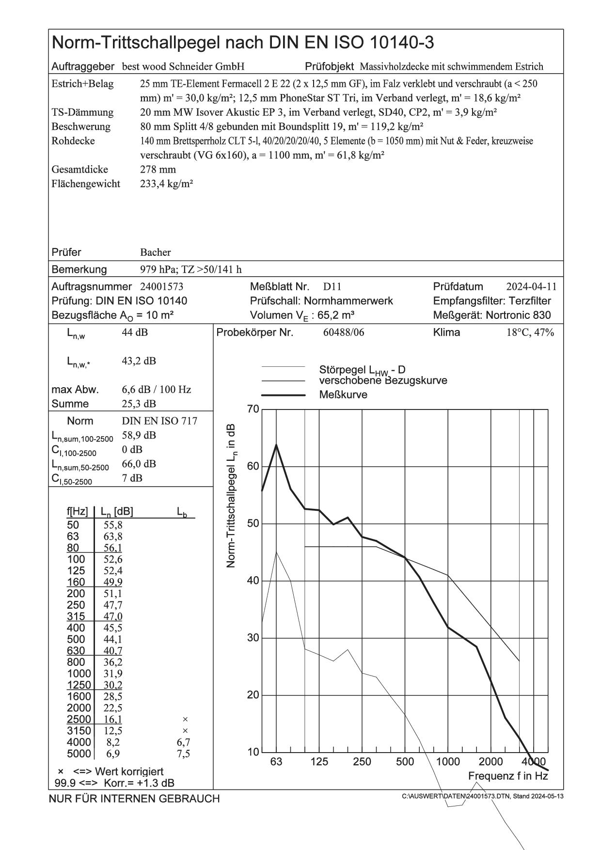 | Tragwerk: | 140 mm Brettsperrholzelemente, m' = 61,8 kg/m² |