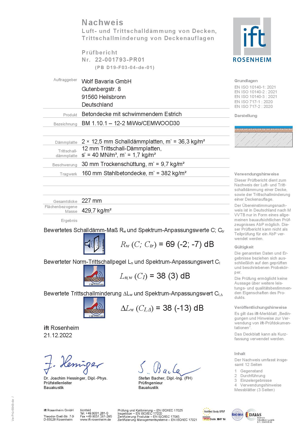 | Bewertete Trittschallminderung-ΔLw [dB]: | 43 (-13) dB |