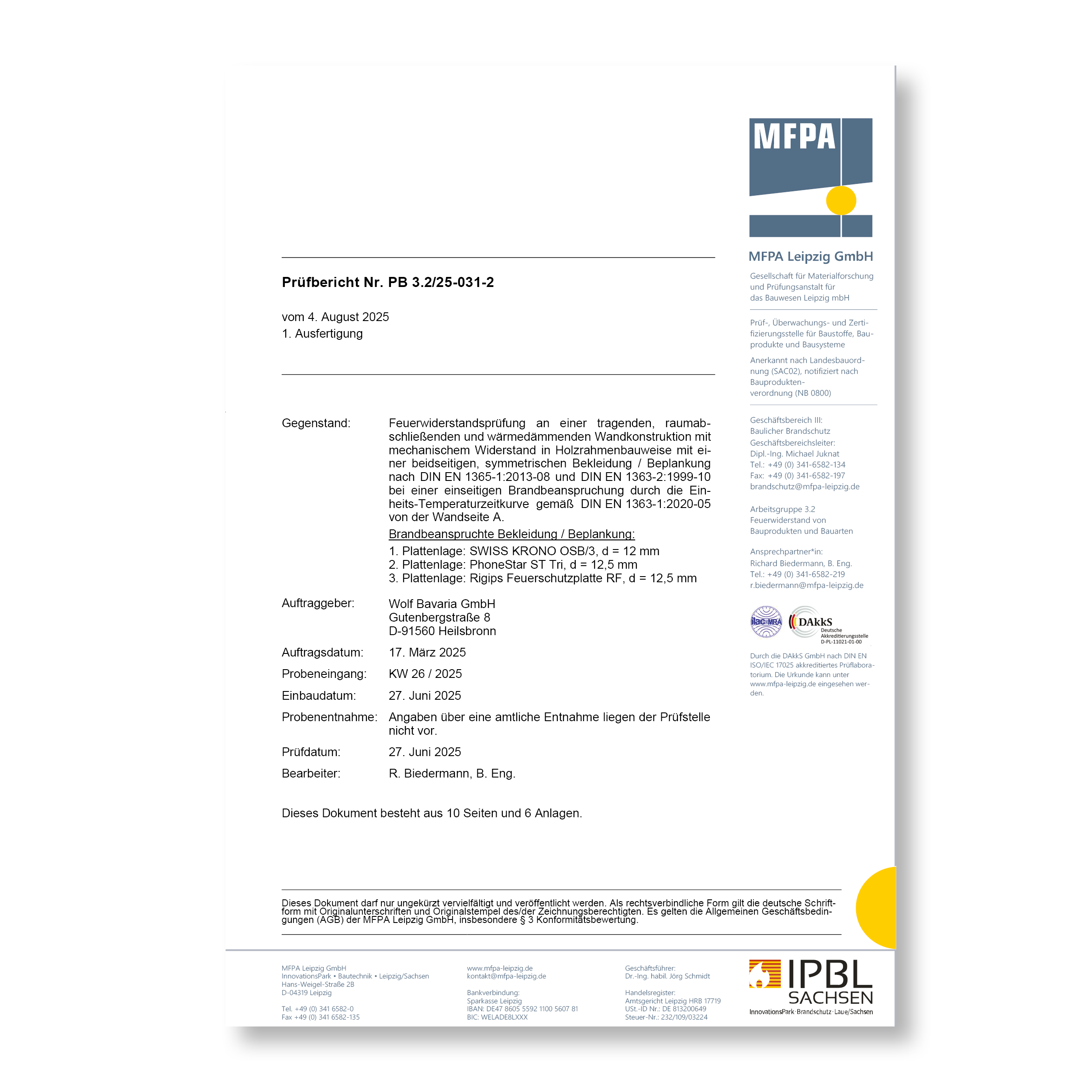 Detaillierte Prüfberichte, Messprotokolle und technische Unterlagen bitte hier: