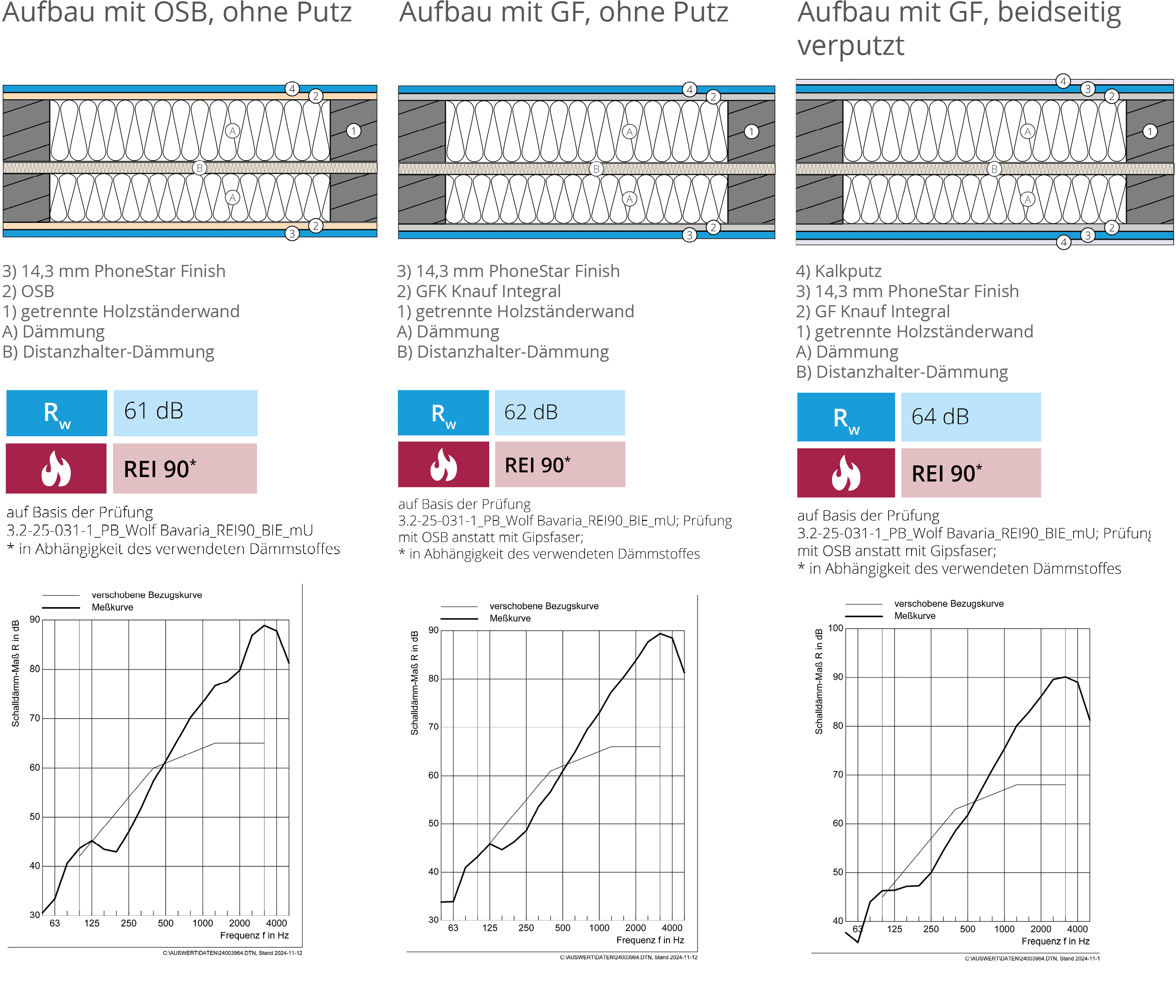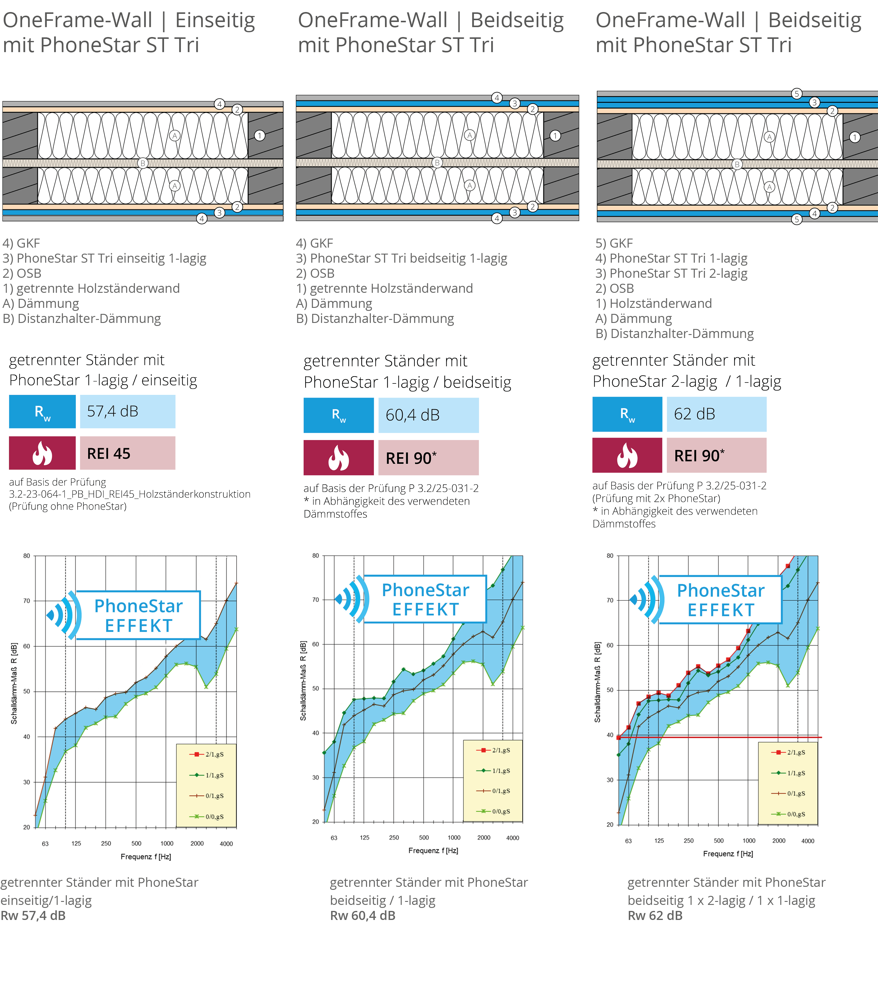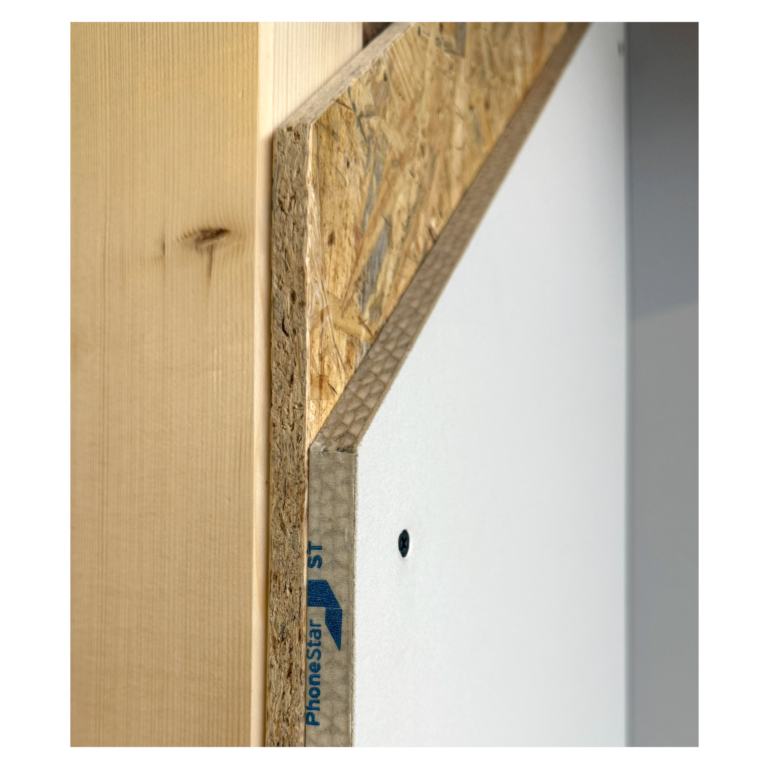 Die OneFrame-Wall Finish setzt neue Maßstäbe im Schallschutz. Egal ob im Neubau, bei Sanierungen oder im industriellen Einsatz – die PhoneStar Finish kombiniert exzellente schalltechnische Eigenschaften mit nachhaltigen Materialien und hoher Wirtschaftlichkeit. Ein weiterer Pluspunkt ist der besonders schlanke Wandaufbau von nur ca. 233 mm sowie die direkt verputzbare Oberfläche, die den Einsatz zusätzlicher Gipskartonplatten überflüssig macht. So wird die OneFrame-Wall Finish zur idealen Lösung für den modernen Holzbau und den effizienten Innenausbau – überall dort, wo Tragfähigkeit, Schall- und Brandschutz gleichermaßen gefragt sind.
