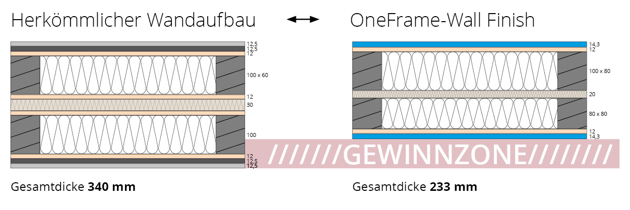 Mit der weiterentwickelten OneFrame-Wall Finish wird das System zusätzlich um eine verputzbare Oberfläche ergänzt und bietet damit eine besonders wirtschaftliche Lösung für moderne Wohngebäude.