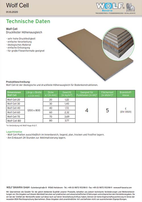 - Wolf Cell Platten ausschließlich im Innenbereich, liegend, plan, trocken und frostfrei lagern.