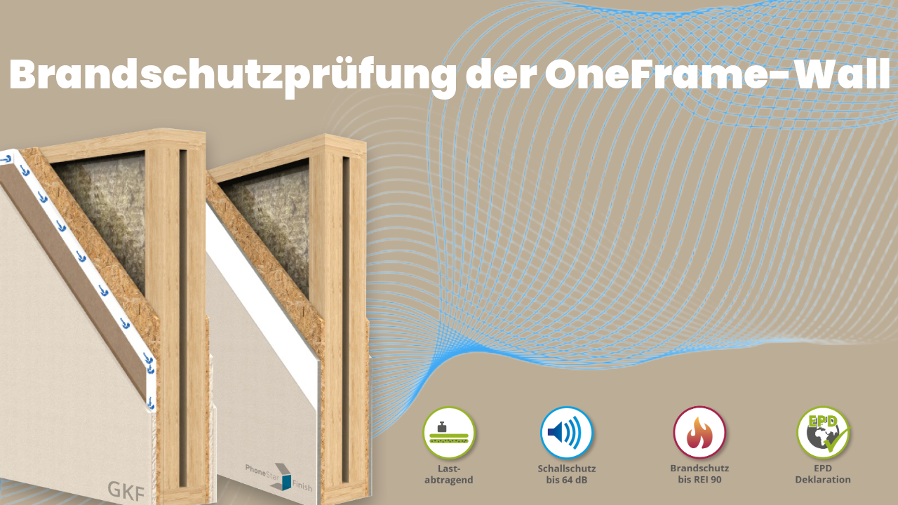 Die OneFrame-Wall ist eine tragende, raumabschließende sowie schall- und wärmedämmende Wandkonstruktion in Holzrahmenbauweise mit beidseitig symmetrischer, mehrlagiger Schall- und Brandschutzbekleidung.