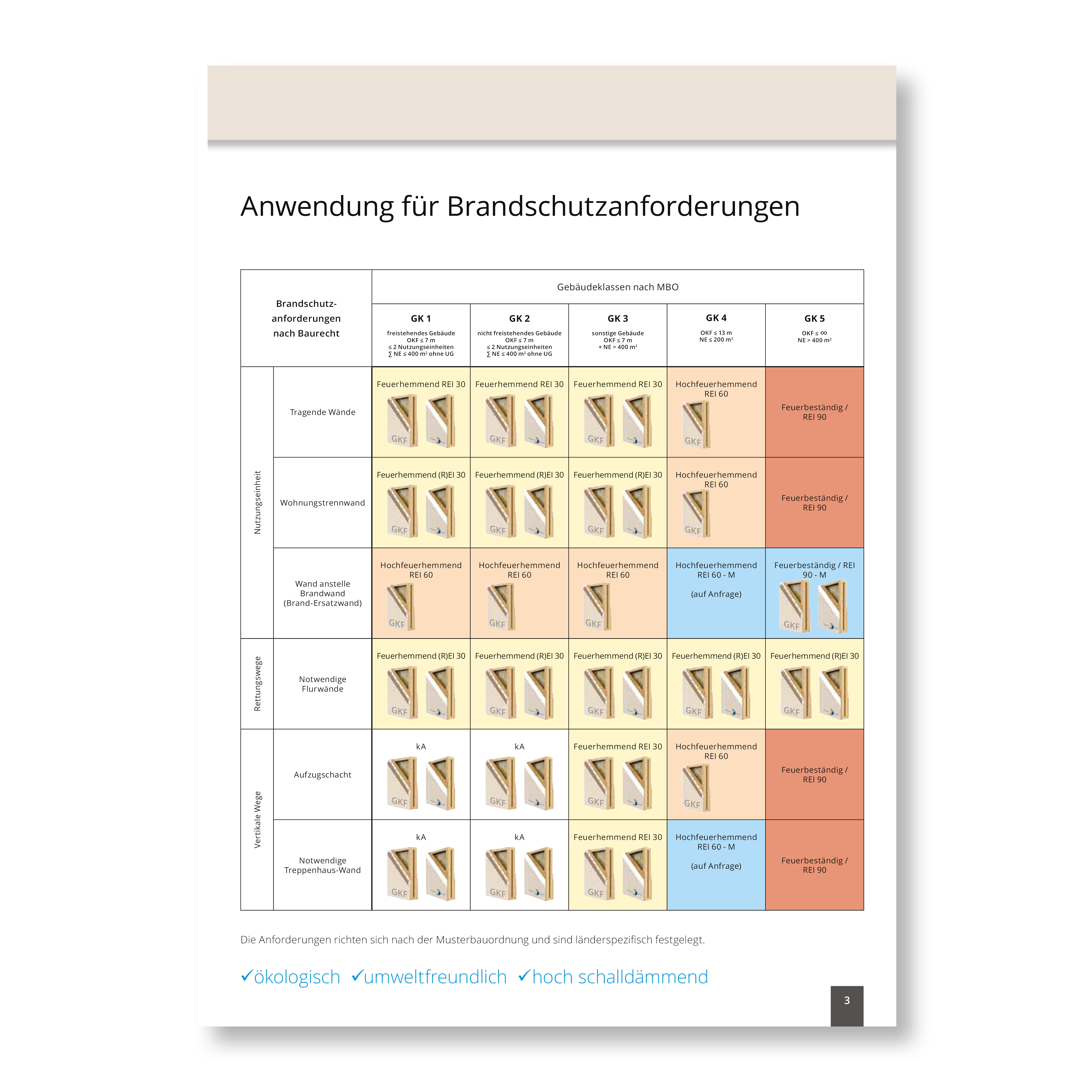 Die folgende Tabelle zeigt die Brandschutzanforderungen nach Baurecht.